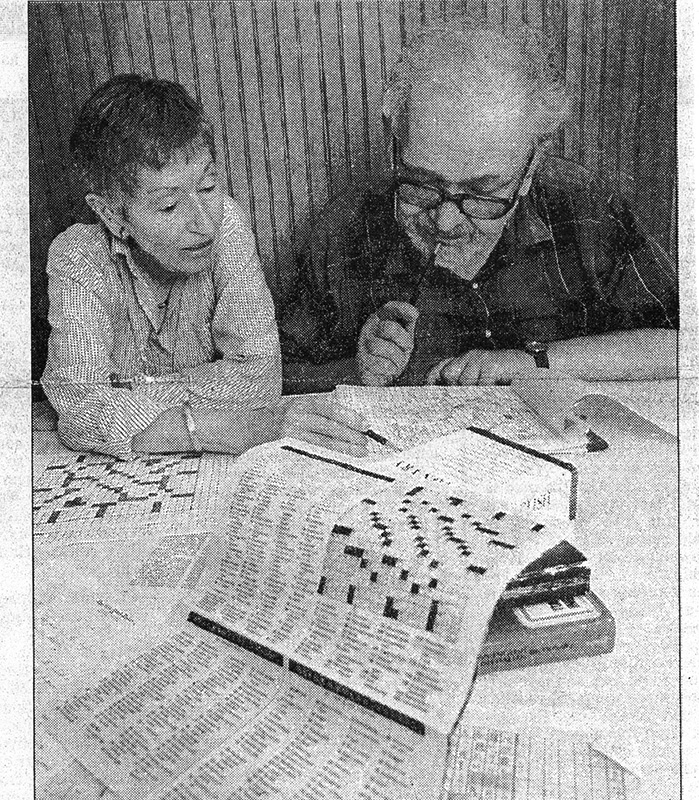 She already had a copy of Eugene Maleska’s book A Pleasure in Words. We had both already read the chapter on how to construct puzzles and her collection of unabridged dictionaries were all on the shelf nearest her desk.